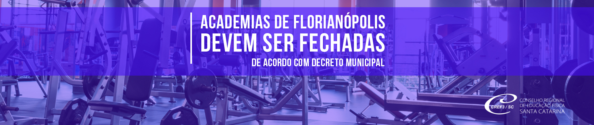 A partir de amanhã, 24 de junho, todas as academias e estabelecimentos que prestem serviços na área das atividades físicas devem permanecer fechados em Florianópolis, obedecendo ao Decreto nº 21.673, de 22 de junho de 2020, da prefeitura da capital.