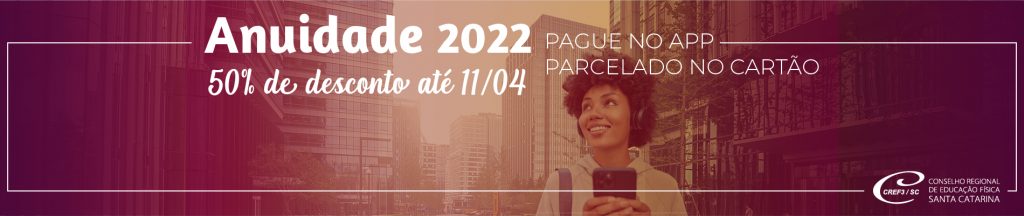 Até o dia 11/04, profissionais podem pagar a anuidade 2022 com 50% de desconto, no valor de R$ 301,54 (com desconto), que pode ser parcelado em até 3x vezes no cartão de crédito.