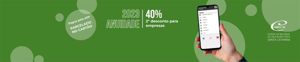 Até o dia 10 de agosto, Empresas registradas no CREF3/SC podem pagar a Anuidade 2023 com desconto de 40%, totalizando R$ 894,24.