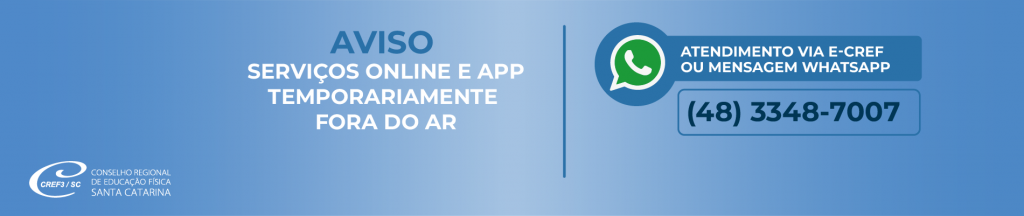 Atenção: o APP e os serviços online do CREF3/SC estão temporariamente fora do ar.