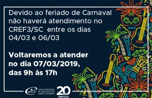 Atenção profissionais: confira o horário de Carnaval do CREF3/SC