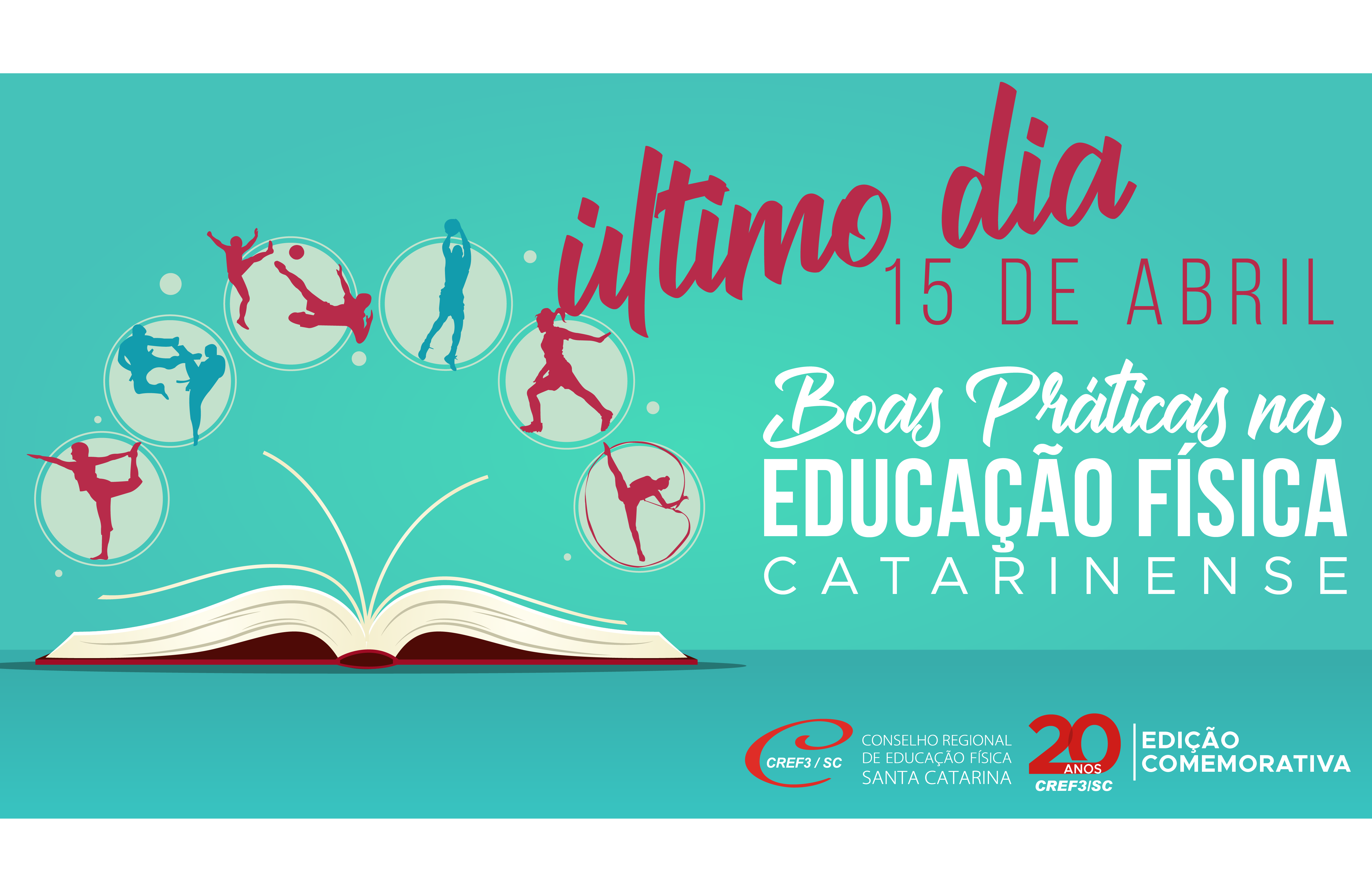 Hoje, 15 de abril, é o último dia para enviar seu artigo para o Livro de Boas Práticas na Educação Física. Ainda dá tempo! As inscrições de artigos são gratuitas para a edição comemorativa aos 20 anos de criação do CREF3/SC. Prepare seu artigo de acordo com as normas do Edital nº 001/2019 e participe!