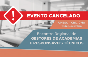 Devido à baixa adesão de inscritos, o Encontro Regional de Gestores de Academias e Responsáveis Técnicos, que seria realizado na Unesc, em Criciúma, no dia 11 de novembro, foi cancelado.