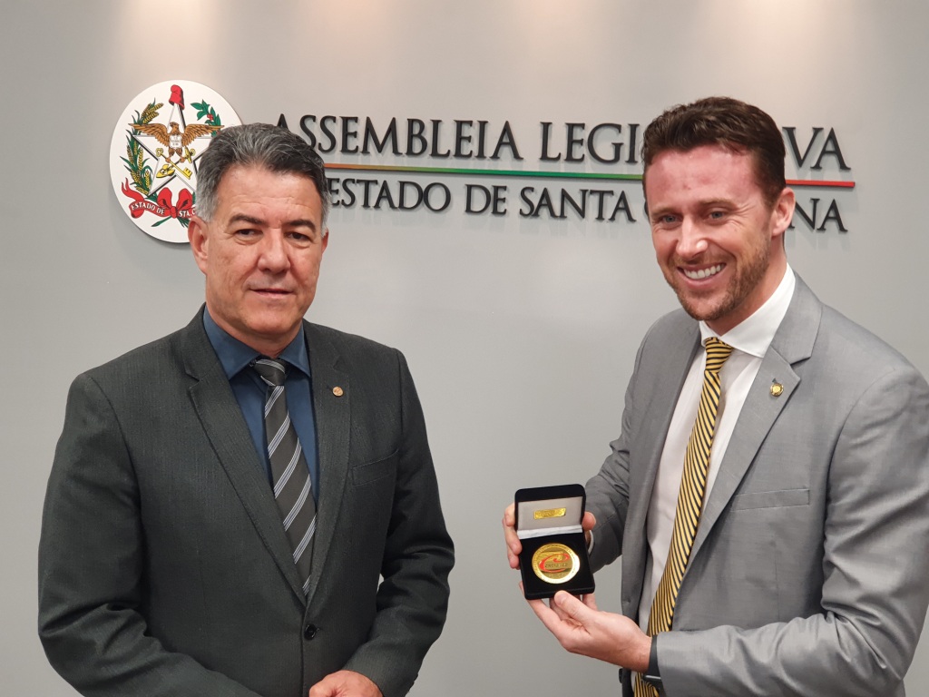 O CREF3/SC falou sobre os 20 anos de atuação do Conselho ontem, 20 de novembro, no plenário da Assembleia Legislativa de Santa Catarina. A sessão plenária foi suspensa para que o secretário geral do CREF3/SC, Jean Carlo Leutprecht (CREF 000012-G/SC), fizesse o registro da comemoração. Na oportunidade, Leutprecht pediu apoio para a aprovação do Projeto de Lei 345/19, do deputado Fernando Krelling (MDB), que trata da atuação de responsáveis técnicos, e entregou medalha comemorativa ao deputado, alusiva aos 20 anos.