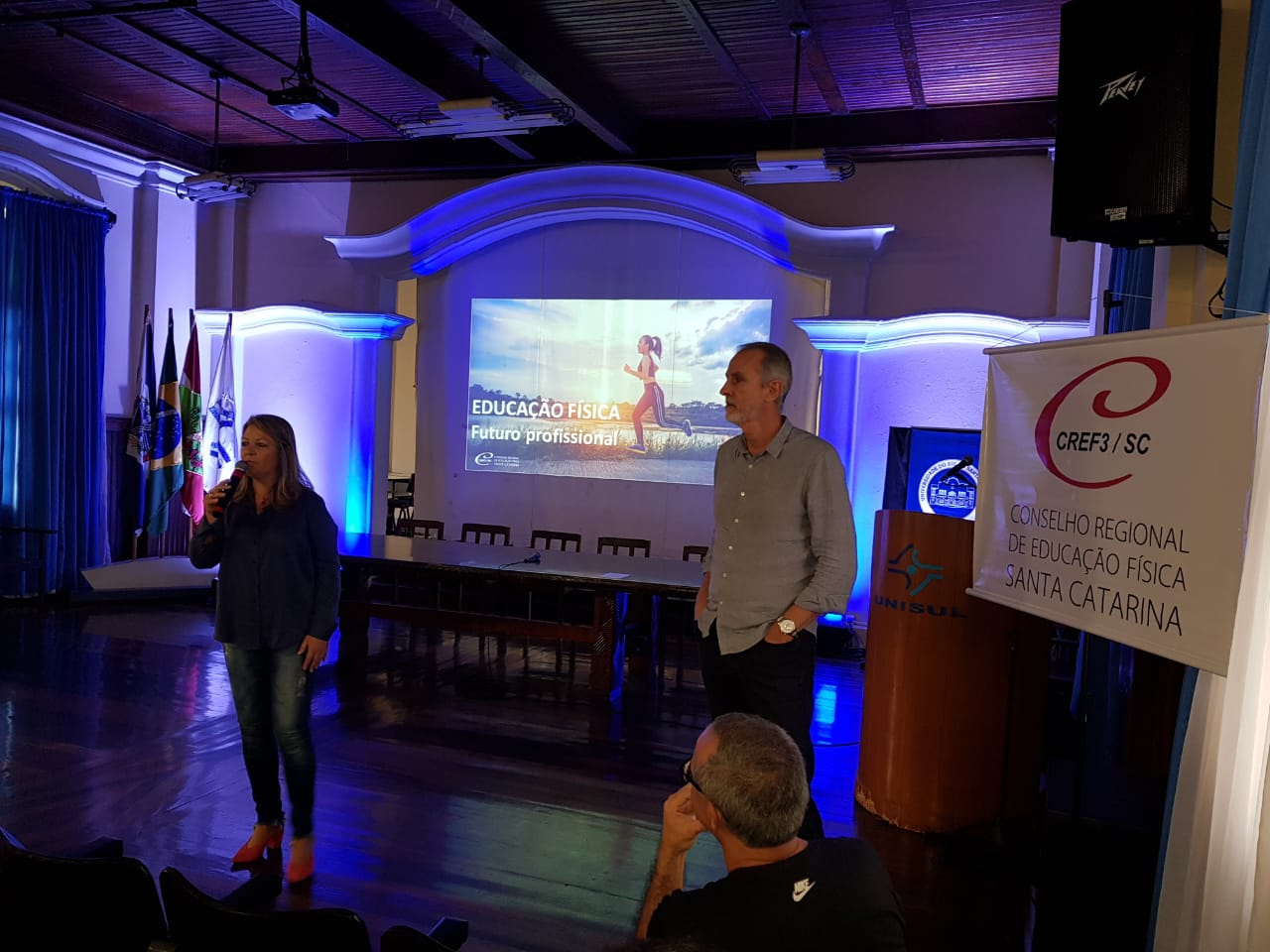 Cerca de 200 acadêmicos e profissionais de Educação Física participam agora dos Workshops de Capacitação e Atualização Profissional, em Rio do Sul e Tubarão. Em Rio do Sul, o conselheiro Emerson Antônio Brancher (CREF 001925-G/SC), 2° vice-presidente, apresentou as ações do Conselho aos participantes na abertura, realizada na quadra de esportes da Unidavi, palco do primeiro curso, com a presença do coordenador do curso de Educação Física, Júlio Cezar Nasário (CREF 002157-G/SC). O conselheiro Darcio de Saules (CREF 000170-G/SC), 2º secretário, fez a abertura do evento em Tubarão, que contou com a participação do conselheiro José Acco Junior (CREF 003343-G/SC), 1º secretário; da coordenadora do curso de Educação Física da Unisul, Luciane Lara Acco (CREF 005945-G/SC) e do assessor de Atividades Externas do CREF3/SC, Juliano Prá (CREF 000258-G/SC).