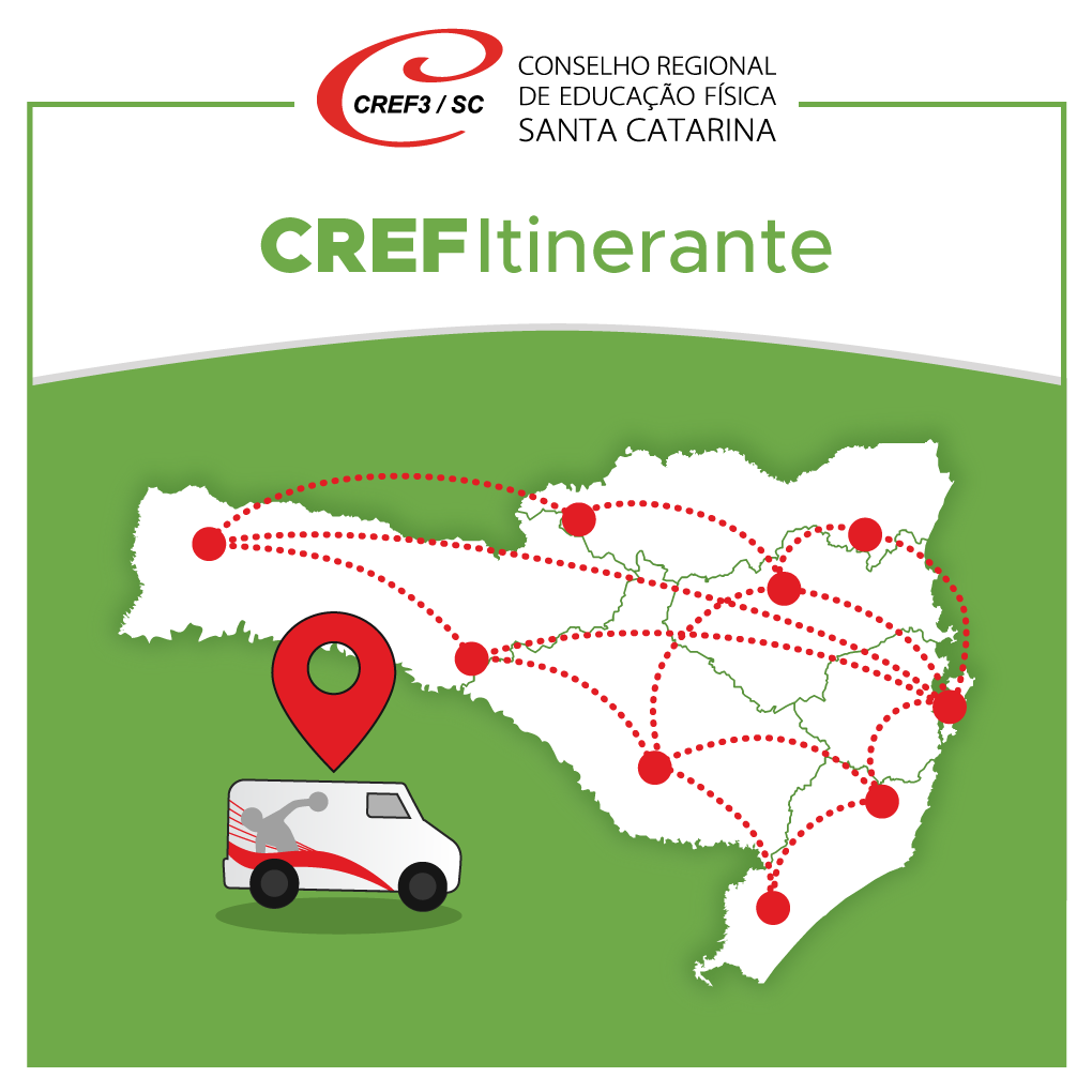 Em dezembro, o CREF Itinerante vai até Indaial levar os serviços do Conselho aos registrados da região. Nos dias 3, 4 e 5, o projeto estará atendendo a Comissão Central Organizadora (CCO) da Olimpíada Estudantil Catarinense (Olesc), que encerra o calendário esportivo 2018 da Fesporte. Aproveite os serviços do Conselho na sua região!