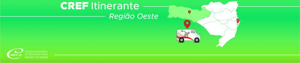 Profissionais que precisem resolver pendências de forma presencial, podem aproveitar o CREF Itinerante que estará, nos dias 31 de agosto e 1 e 2 de setembro, nas cidades de São Miguel do Oeste, Chapecó e Concórdia. Confira abaixo os locais e horários e aproveite! Não se preocupe: devido à pandemia, todos os protocolos de segurança serão seguidos pela equipe no atendimento.