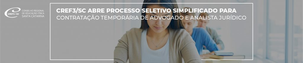As inscrições ocorrem no período entre 15/02 a 08/03/2022, mediante entrega da documentação pertinente em envelope lacrado a ser endereçado ao setor de Recursos Humanos do CREF3/SC com o título “Processo Seletivo Simplificado nº 01/2022 do CREF3/SC” e o preenchimento do requerimento de inscrição nos moldes do Anexo II do Edital, ou envio para o endereço eletrônico rh.cref3sc@gmail.com, com a documentação escaneada e legível.