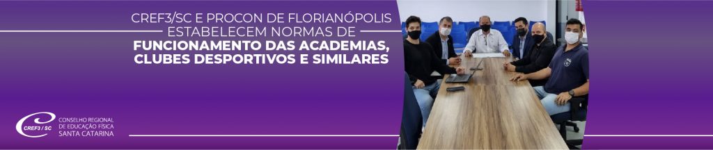 Em reunião realizada na última sexta-feira, 29 de outubro, o presidente do CREF3/SC prof. Irineu Wolney Furtado (CREF 003767-G/SC) e o Secretário Municipal de Defesa do Cidadão de Florianópolis Erádio Manoel Gonçalves estabeleceram normas de funcionamento das academias, clubes desportivos e similares, bem como a cooperação técnica para orientação, prevenção e fiscalização do comércio de produtos e serviços de Educação Física na capital, com a assinatura da Nota Técnica nº 01/2021 e do Termo de Acordo de Cooperação.