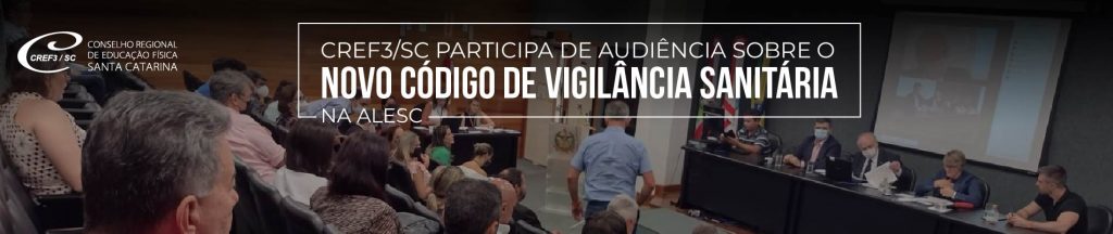 O secretário geral do CREF3/SC, Jean Carlo Leutprecht (CREF 000012-G/SC), e a chefe do Departamento de Orientação e Fiscalização do CREF3/SC, Fernanda Silva Rodrigues (CREF 031636-G/SC), participaram na manhã de ontem, 29 de março, da audiência pública que debateu o novo código estadual de Vigilância Sanitária. A audiência apontou como principal encaminhamento uma discussão conjunta entre os quatro colegiados que vão debater o Projeto de Lei (PL) 253/2018. A ideia, sugerida pela deputada Luciane Carminatti, é que as comissões de Finanças e Tributação, Constituição e Justiça, Saúde e Meio-Ambiente tenham um único relatório antes de a proposição ser discutida no Plenário.