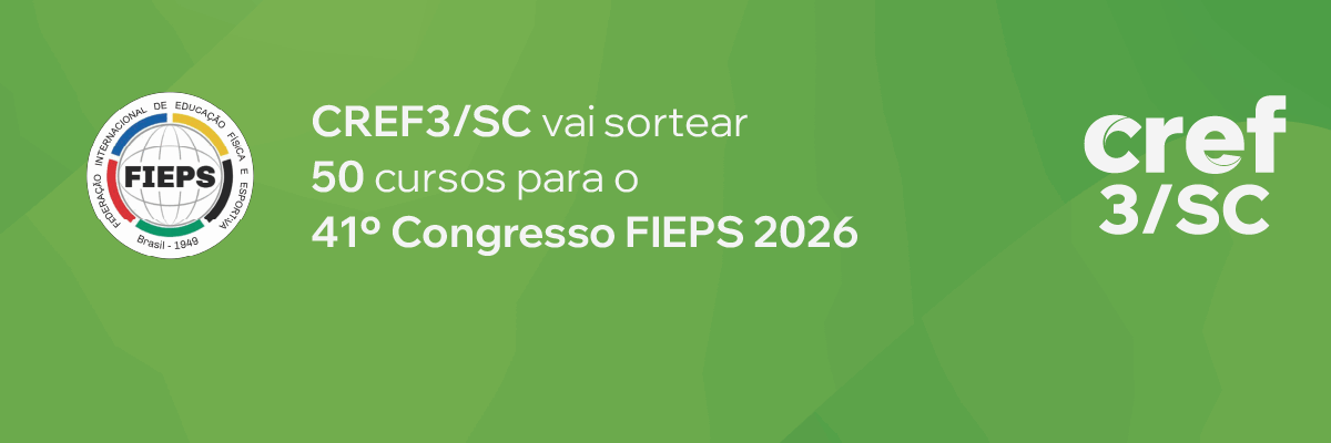 O CREF3/SC vai sortear 50 cursos gratuitos para profissionais de Educação Física participarem do 41º Congresso Internacional de Educação Física – FIEPS 2026, que será realizado entre os dias 15 e 18 de janeiro de 2026, em Foz do Iguaçu/PR.