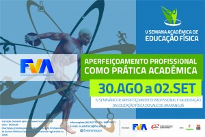 Inicia hoje, 30 de agosto, a V Semana Acadêmica dos Cursos de Educação Física da Faculdade do Vale do Araranguá e o IV Seminário Regional de Aperfeiçoamento Profissional e Valorização da Educação Física, realizados pela FVA – Faculdade do Vale do Araranguá, com apoio do Conselho Regional de Educação Física de Santa Catarina. A abertura do evento ocorre às 19hs, no Teatro Célia Belizária, em Araranguá.