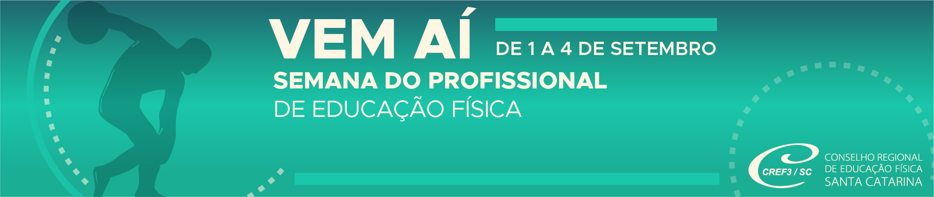 Em comemoração ao Dia do Profissional de Educação Física, o CREF3/SC preparou uma série de lives com temas que vão debater perspectivas para a área e para os profissionais, entre os dias 1º e 4 de setembro, no Instagram do CREF3/SC. Além dos debates, que vão receber profissionais da região sul, acontecerá o lançamento online do Livro de Boas Práticas na Educação Física Catarinense, que conta com relatos de profissionais de todo o Estado.
