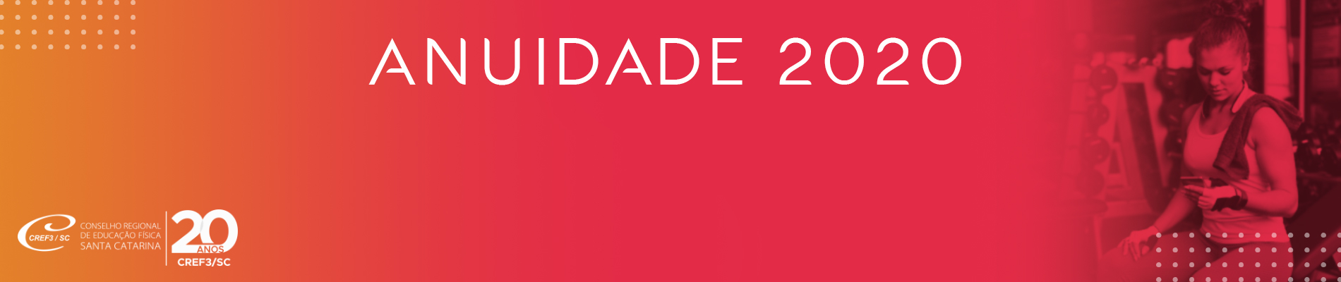 Estabelecida pela Resolução n° 0179/2019/CREF3/SC, a anuidade 2020 mais uma vez não sofrerá reajuste, e permanece com o mesmo valor desde 2017: R$ 603,07, válida para registrados no CREF3/SC até 31/12/2019. Neste ano, foram alteradas as datas de pagamento e acrescido mais um percentual de desconto, de acordo com a tabela abaixo: