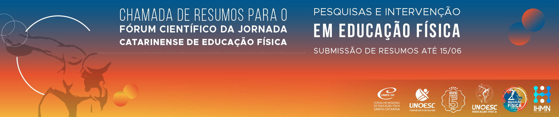 O CREF3/SC, em parceria com a Unoesc Joaçaba, lança edital de chamada de resumos para o Fórum Científico da Jornada Catarinense de Educação Física – Meio Oeste, que serão apresentados em formato pôster durante a Jornada, marcada para os dias 5 a 7 de agosto, em Joaçaba. Os resumos farão parte do livro da Jornada Catarinense de Educação Física – Meio Oeste: Pesquisas e Intervenção em Educação Física. Confira o edital nº 002/2021 e participe!