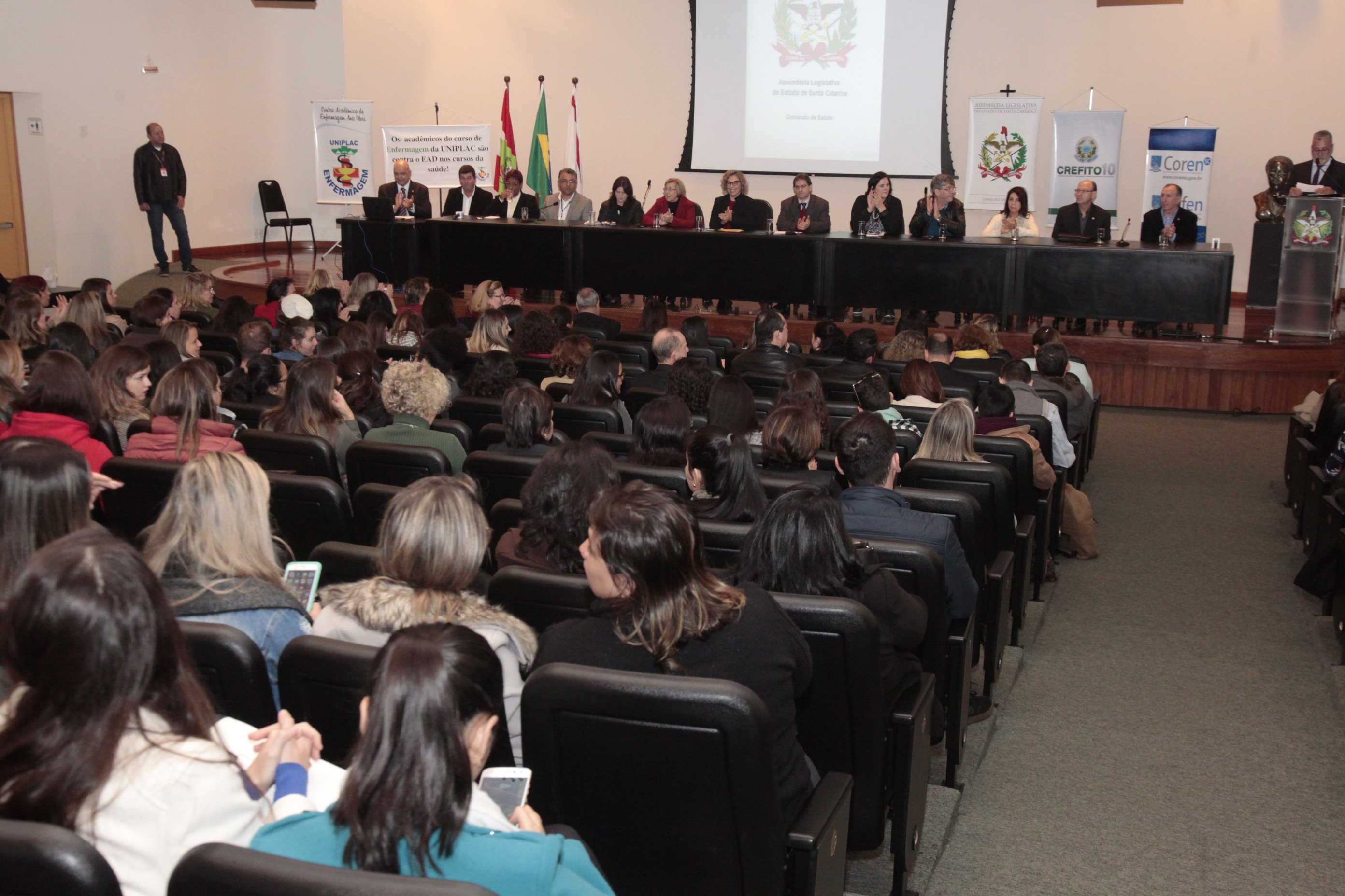 Opinião semelhante foi apresentada pela presidente do Conselho Regional de Enfermagem (Coren-SC), Helga Bresciani. Conforme a entidade, atualmente são oferecidos no estado cursos de graduação em enfermagem na forma EAD nas cidades de Araranguá, Blumenau e Joinville. “É impossível pensarmos que a enfermagem, em que é essencial a prática e a integração entre profissional e paciente, possa ser ensinada a distância. Fora disso, de que forma se conseguirá a qualidade e a segurança na assistência que a população tanto precisa? É por este motivo que precisamos debater essa situação com a sociedade.”