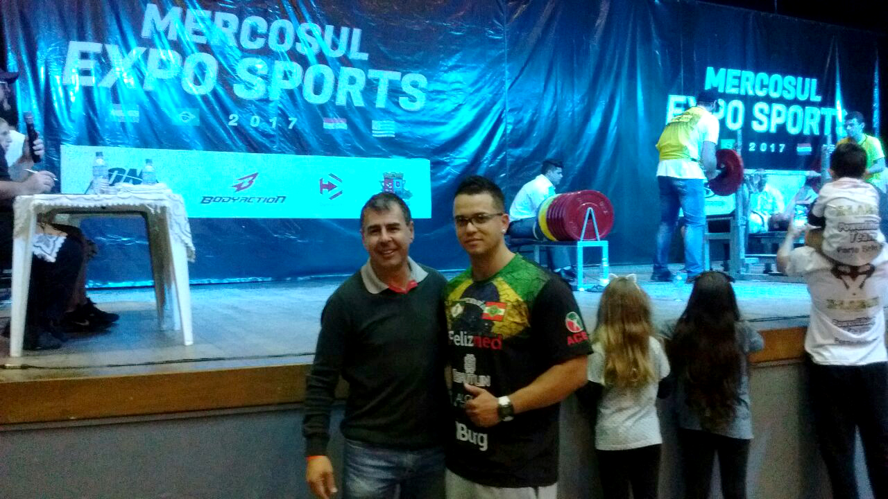 Na foto, o presidente do CREF3/SC e o presidente da Associação Catarinense dos Espotes de Força (ACEF), Cícero Bezerra da Silva Júnior (CREF 012756-G/SC), que aproveitaram o evento para troca de informações sobre a modalidade e perspectivar parcerias futuras. Cícero faz parte do Hall da Fama Brasil em razão de sua participação no mundial em 2013, quando ele retornou para Camboriú com o título de Melhor Supino do Mundo, na categoria 82,5 kg.