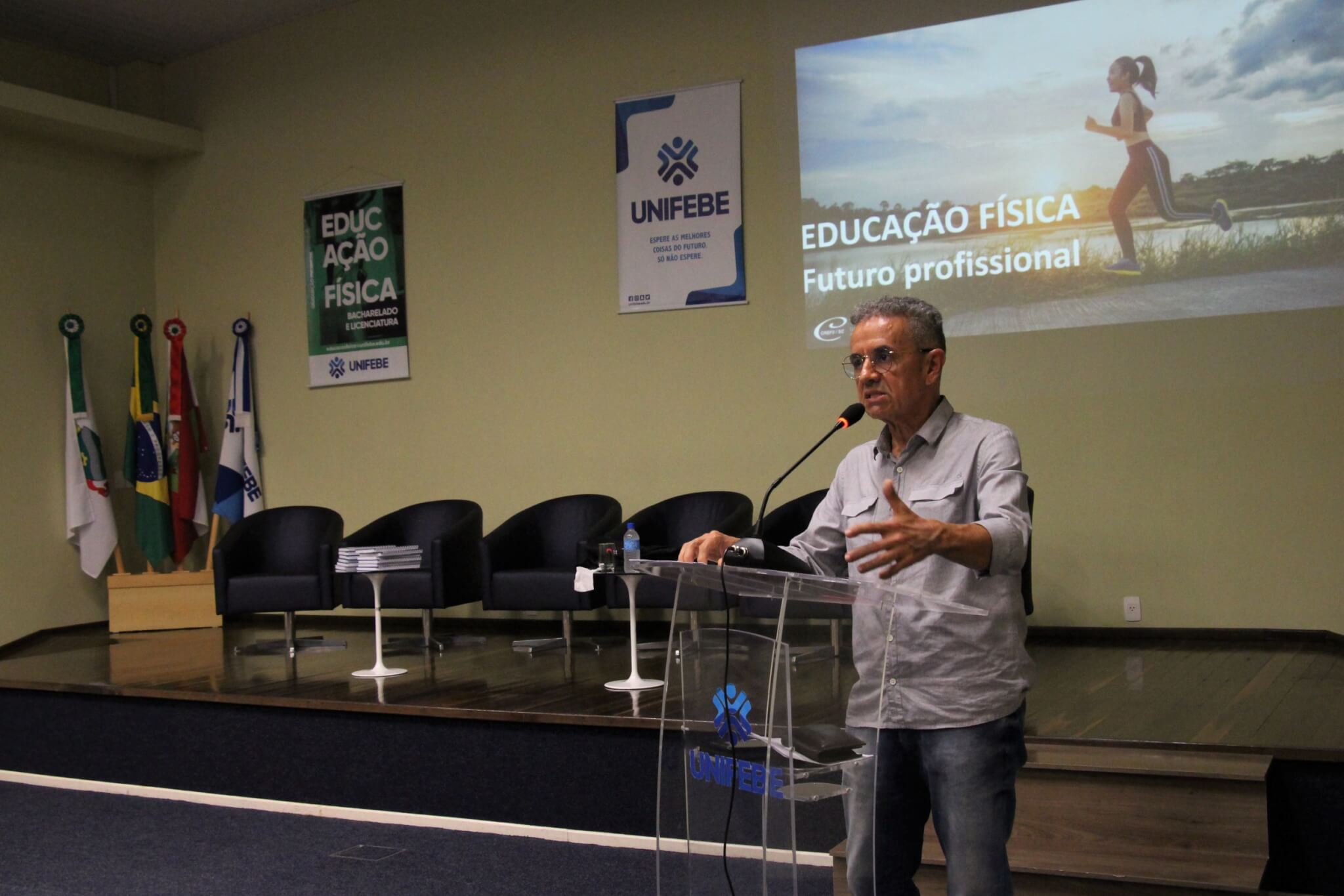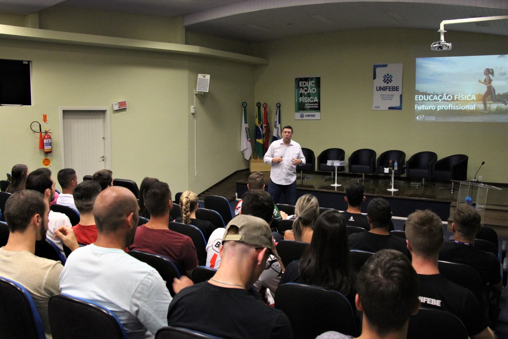 O assessor de Atividades Externas do CREF3/SC, Juliano Prá (CREF 000258-G/SC), proferiu palestra sobre a Educação Física e as perspectivas para o futuro da profissão na Unifebe, em Brusque, na noite de quarta-feira, 13 de março, durante a Aula de Apresentação do curso de Educação Física.