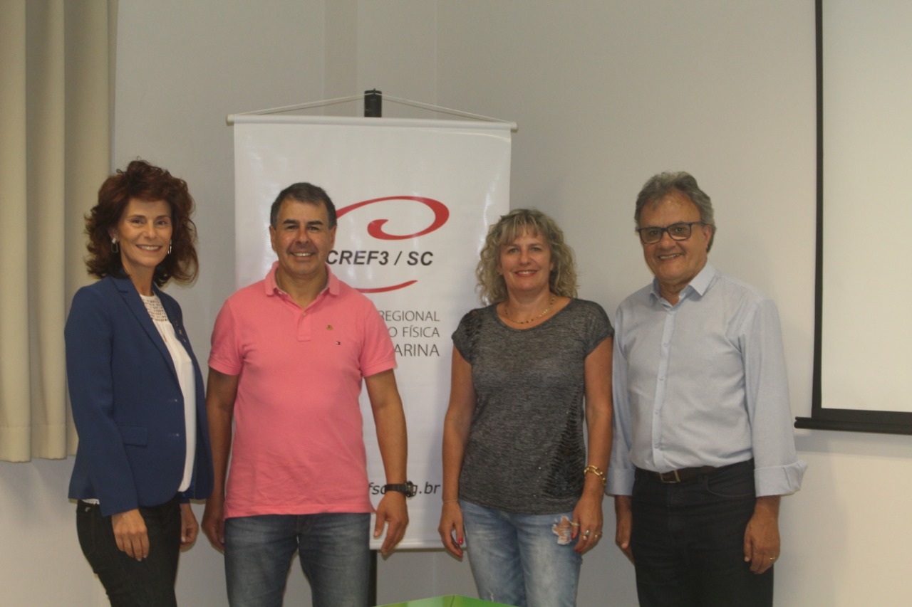 Estiveram presentes na reunião o presidente do CREF3/SC Irineu Wolney Furtado (CREF 003767-G/SC), a conselheira do CREF3/SC, professora da Unoesc Elisabeth Baretta (CREF 000330-G/SC), que, na oportunidade, foi eleita presidente da Comissão, a professora Ederlei Zago (CREF 000046-G/SC), também da Unoesc, e o professor da Uniarp, Jorge Luiz Velasquez (CREF 000950-G/SC). Compõem ainda a comissão, o conselheiro federal Marino Tessari (CREF 000007-G/SC) e a conselheira Maria Valéria Figueiredo (CREF 011608-G/SC).