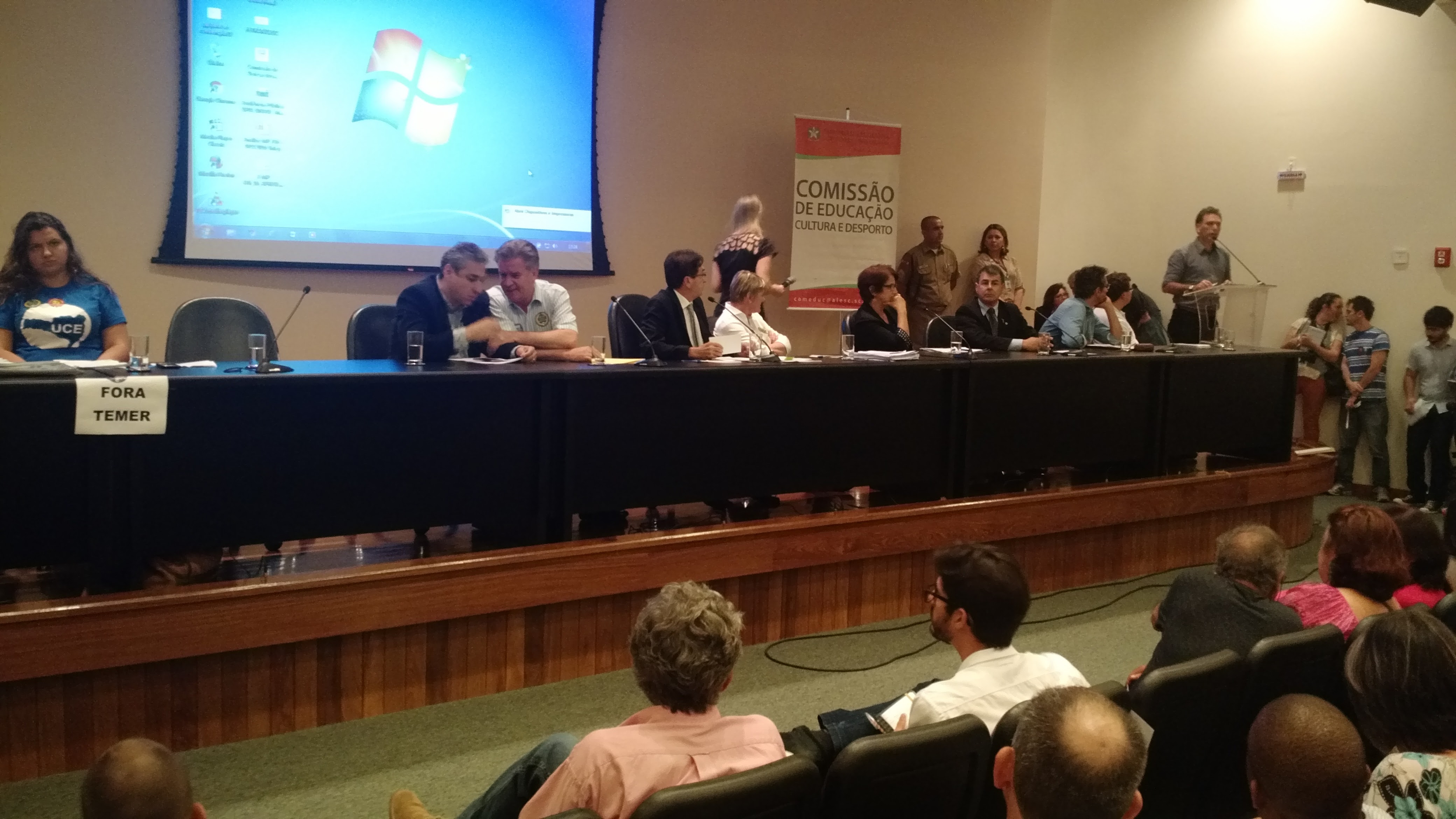 img_20161107_161448828O presidente do CREF3/SC Irineu Wolney Furtado participou da audiência pública proposta pela Assembleia Legislativa para discutir a Medida Provisória (MP) 746/2016, que promove a reforma do ensino médio. Após protestos, a audiência foi encerrada pelo presidente da Comissão de Educação, Cultura e Desporto da Assembleia Legislativa, deputado Antonio Aguiar (PMDB), mas o debate foi mantido entre os participantes.