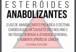 Para auxiliar os profissionais de Educação Física, o CREF3/SC disponibiliza um cartaz com a advertência, basta baixar aqui. A placa deve ser afixada em locais de transito e permanência de alunos e frequentadores, com os seguintes termos: “O uso de anabolizantes prejudica o sistema cardiovascular, causa lesões nos rins e no fígado, degrada a atividade cerebral e aumenta o risco de câncer”. O descumprimento está sujeito à multa e suspensão temporária das atividades esportivas oferecidas pelo estabelecimento, durante o prazo máximo de 30 dias corridos, em caso de nova notificação.