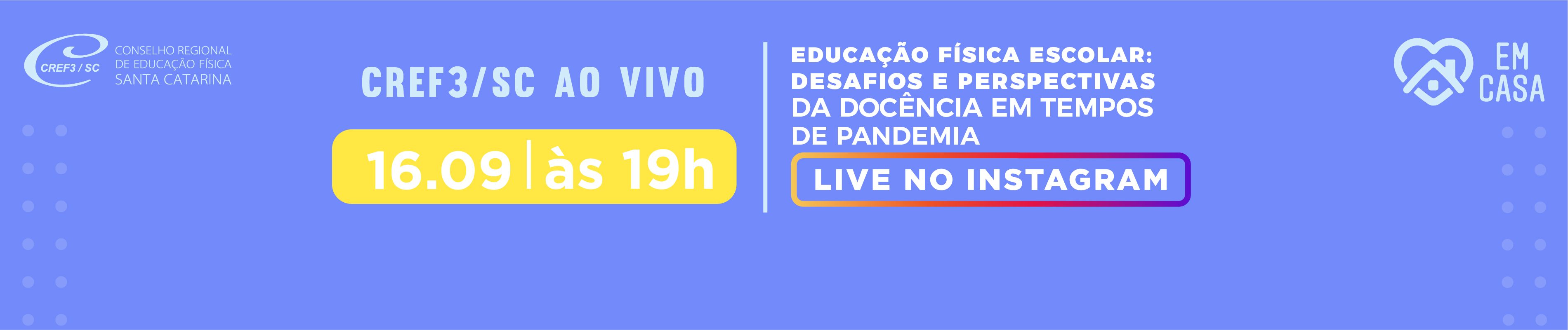 Live no Instagram do CREF3/SC: 16/09, às 19hs