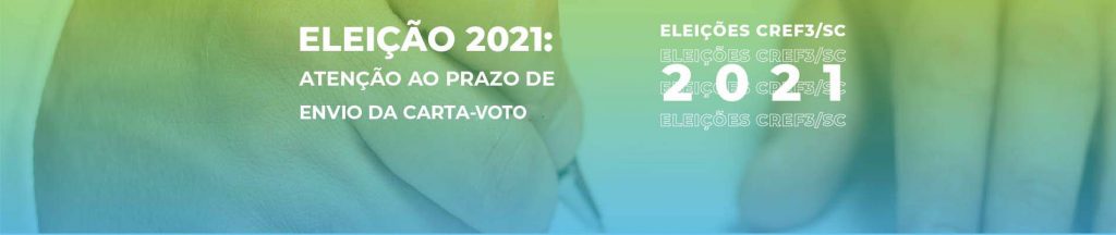 O profissional de Educação Física que optar pelo voto por correspondência na Eleição 2021 deve ficar atento ao prazo de envio da carta-voto nos Correios para a Caixa Postal do CREF3/SC. Somente serão computados os votos por correspondência que forem recebidos na caixa postal indicada até às 15h do dia 1º de outubro de 2021, cabendo a cada profissional remetê-lo com a antecedência devida. De acordo com o Regimento Eleitoral, os votos que chegarem após o prazo serão aceitos para fins de justificativa do não exercício do direito ao voto, contudo, sem serem contabilizados.