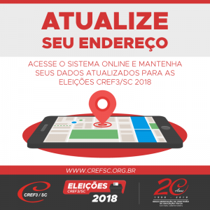 Neste ano de eleição no CREF3/SC, é fundamental que os profissionais de Educação Física registrados no Conselho mantenham seu cadastro atualizado para participar do pleito, marcado para o dia 5 de setembro. Acesse os Serviços Online e confira seus dados. Todos os profissionais receberão a cédula-voto e informações sobre as eleições no endereço cadastrado no sistema e poderão assim exercer o direito a voto, tanto por correspondência, quanto presencial, no dia da eleição.