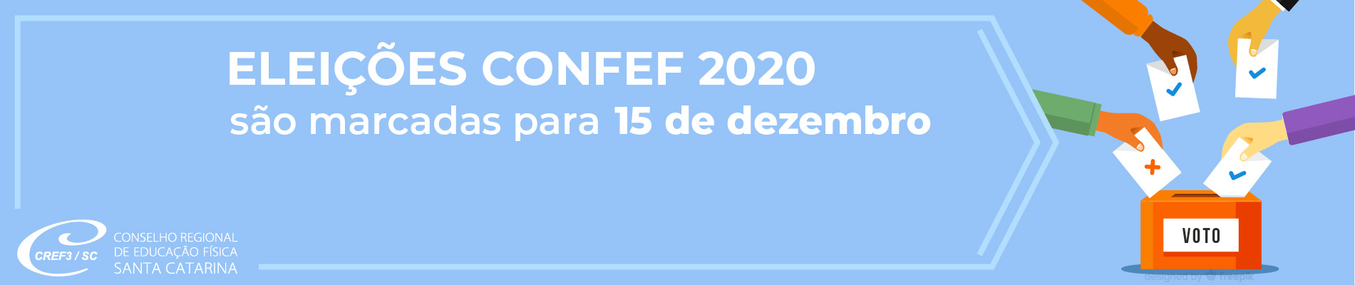 O Conselho Federal de Educação Física realiza no dia 15 de dezembro de 2020, a eleição dos 28 membros do CONFEF, sendo 20 efetivos e 8 suplentes, para mandato de 4 anos. A eleição poderá ocorrer por correspondência (através de carta-voto) ou por comparecimento pessoal do Profissional na sede do CONFEF, no Rio de Janeiro, das 9 às 15h.