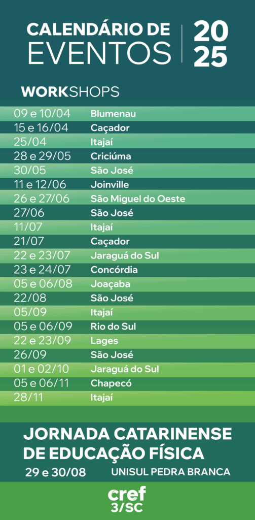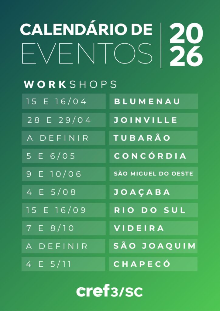 | Workshop CREF3/SC | Jaraguá do Sul | 06 e 07/10 |