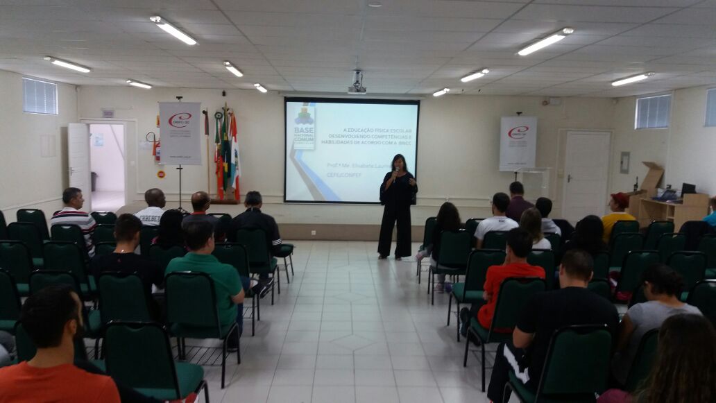 A Profª. Elisabete Laurindo de Souza (CREF 002036-G/SC) deu início na manhã de hoje, 9 de maio, ao Workshop de Capacitação e Atualização Profissional de Jaraguá do Sul, com o curso “A Educação Física Escolar Desenvolvendo Competências e Habilidade de acordo com a nova BNCC”. O vice-presidente do CREF3/SC, Prof. Jean Carlo Leutprecht (CREF 000012-G/SC), abriu o evento, que conta com mais de 100 participantes e será realizado até amanhã, 10/05, no SESI.
