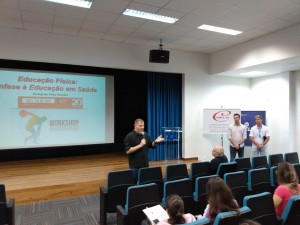 Profissionais e acadêmicos de Educação Física participam agora do Workshop de Capacitação e Atualização Profissional de Joinville, que acontece na IELUSC, em Joinville. O prof. Dr. Dartagnan Pinto Guedes (CREF 000870-G/PR) ministra o curso “Educação Física Escolar com Ênfase à Educação em Saúde”, e vai apresentar e discutir alternativas práticas de orientação da atividade física direcionada à promoção da saúde, bem como oferecer subsídios para a promoção e implantação de programas de ensino. O vice-presidente do CREF3/SC, prof. Emerson Antônio Brancher (CREF 001925-G/SC), abriu o evento, que contou também com a participação do conselheiro Fernando Krelling (CREF 007007-G/SC).