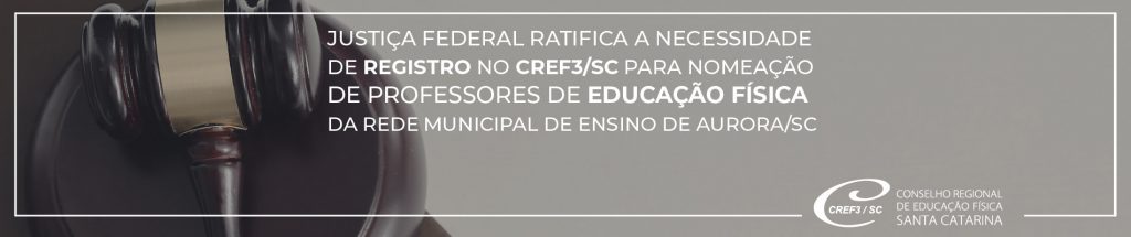 O Juízo Substituto da 1ª VF de Rio do Sul decidiu, em tutela de urgência, que a prefeitura de Aurora não nomeie ou dê posse aos candidatos aprovados no Processo Seletivo nº 01/2021 para o cargo de Professor de Educação Física do Ensino Básico municipal – ainda que se trate de Ensino Fundamental – que não estejam devidamente habilitados, ou seja, não tenham o respectivo grau de Licenciatura em Educação Física, com registro no CREF3/SC. A decisão foi tomada no dia 19/01/2022, após Ação Civil Pública ajuizada pelo CREF3/SC, para que fosse observado o disposto na Lei nº 9.696/1998, impedindo o exercício do magistério de Educação Física por professores sem o registro profissional no Sistema CONFEF/CREFs e também a contratação de não habilitados.