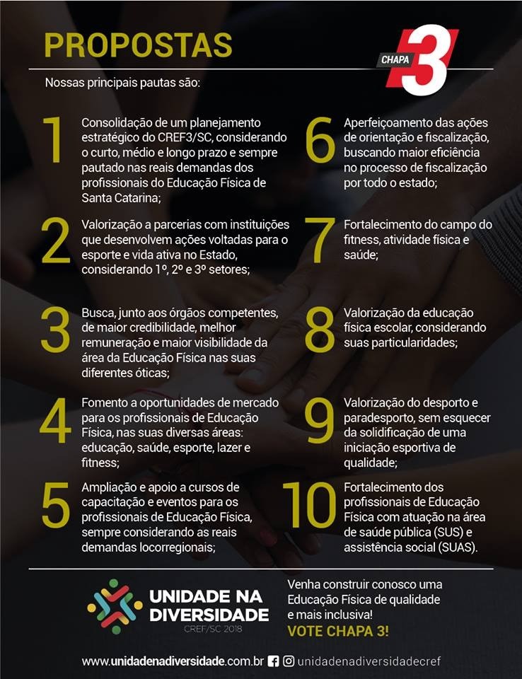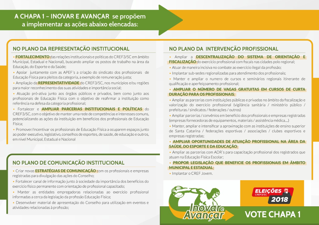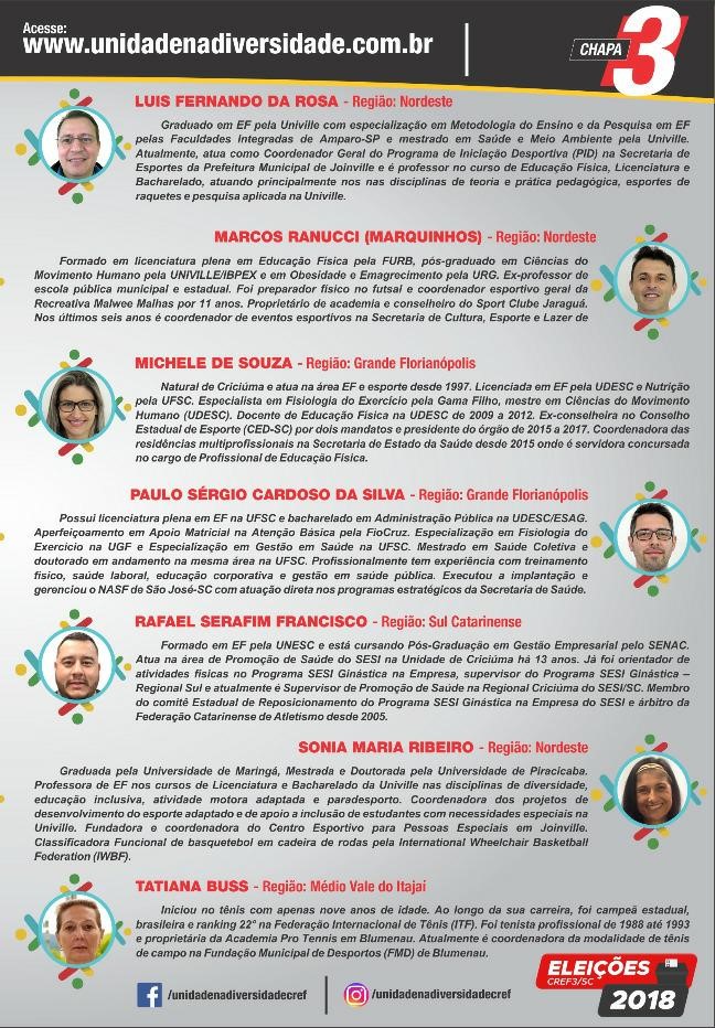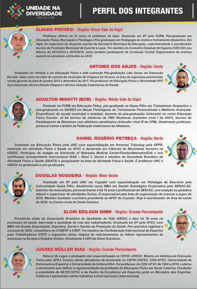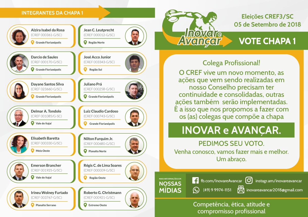 O Conselho Regional de Educação Física de Santa Catarina realiza, no dia 5 de setembro, eleição de conselheiros do CREF3/SC, para um mandato de seis anos. Serão eleitos 14 membros, sendo dez efetivos e quatro suplentes.
