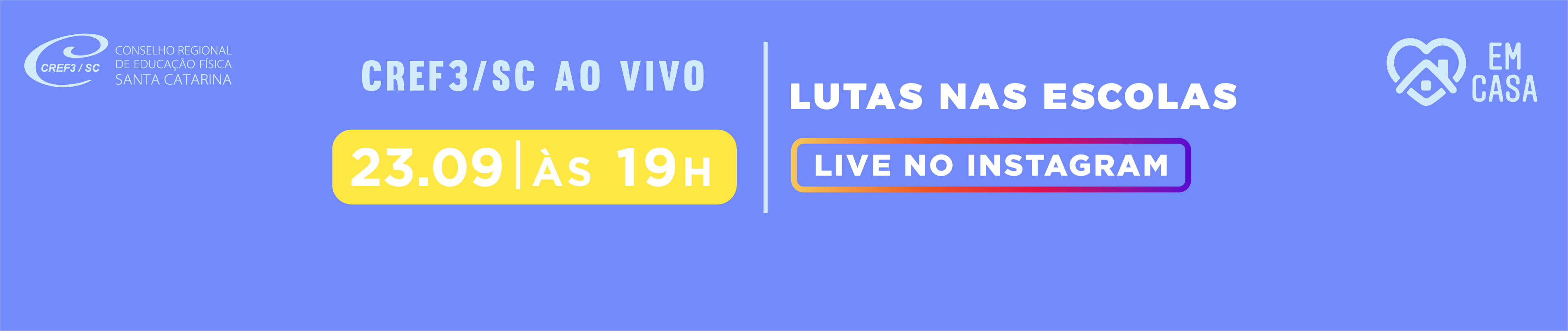 Dando sequência à série de lives que o CREF3/SC vem promovendo, apoiando e participando, na próxima quarta-feira, 23 de setembro, às 19h, venha para um bate-papo sobre “Lutas nas Escolas” no Instagram do CREF3/SC. A live traz o 2º vice-presidente do CREF3/SC, prof. Emerson Antônio Brancher (CREF 001925-G/SC) e o Coordenador Técnico da Federação Catarinense de Judô, Ademir Schultz Junior (CREF 007278-G/SC), para falar sobre importância das aulas de lutas para o desenvolvimento dos alunos, a BNCC, que traz as lutas e seus segmentos no contexto escolar, a diferença de rendimento e iniciação esportiva das lutas escolares, além de estratégias para superar os desafios da área durante a pandemia.