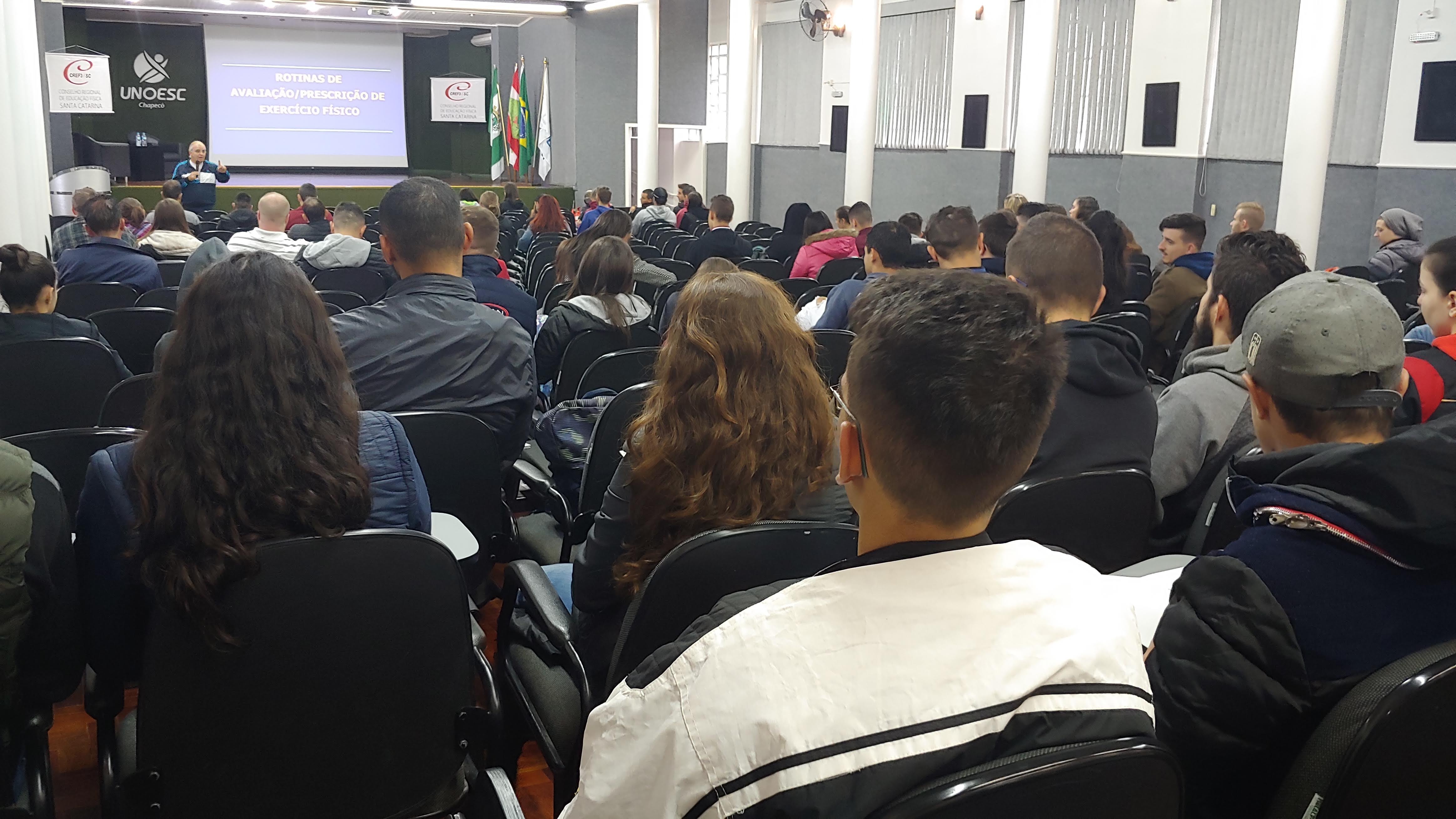 Mais um dia de aprendizado e troca de informações na 2ª Jornada Catarinense de Educação Física da Região Oeste, que reúne hoje, 25, mais de 250 acadêmicos e profissionais de Educação Física, na Unoesc, em Chapecó. Fisiologia do Exercício Físico: Aplicação no Trabalho do Profissional de Educação Física, ministrado pelo Prof. Dr. Dartagnan Pinto Guedes (CREF 000870-G/PR), Abordagem Biomecânica de alguns exercícios da musculação, com o Prof. Me. Cristiano Gomes Sanchotene (CREF 009054-G/SC) e BNCC – Educação Física – Encaminhando Mudanças, ministrado pelo Prof. Me. Adonis Marcos Lisboa (CREF 002739-G/SC) são os cursos que encerram hoje o evento.
