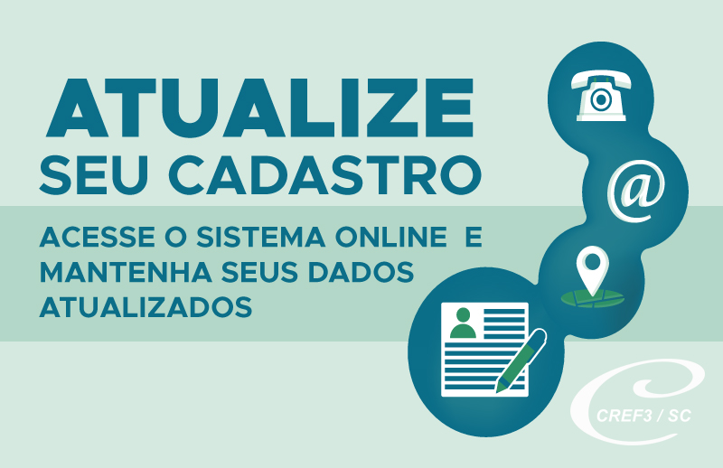 Mudou de endereço, telefone ou e-mail? Comunique o CREF3/SC! Acesse os Serviços Online, mantenha seu cadastro sempre atualizado e garanta o recebimento da Agenda 2018 no endereço indicado no cadastro (ou no endereço residencial).
