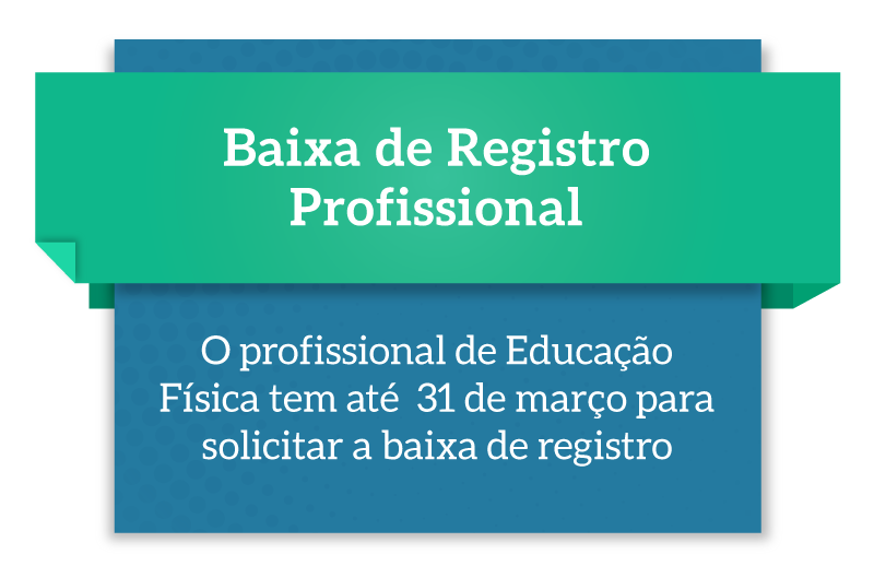 banner-baixa-de-registro-02O profissional de Educação Física que não estiver exercendo a profissão pode solicitar a Baixa de Registro Profissional, se estiver de acordo com as RESOLUÇÕES CONFEF nº 281/2015 e nº 313/2015. Os pedidos solicitados até o dia 31 de março ficam isentos do pagamento de anuidade do exercício em curso, desde que deferidos pelo Plenário do CREF3/SC.