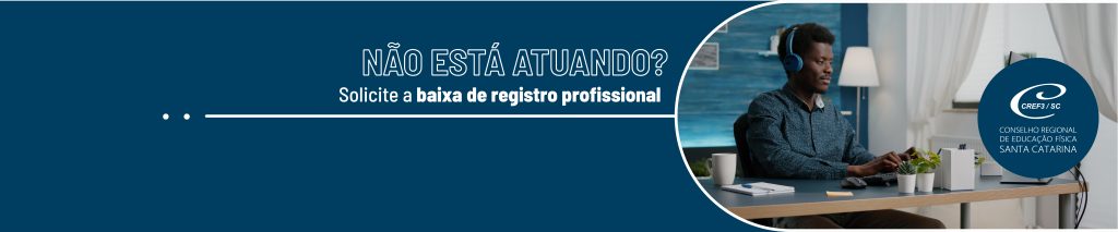 Não está atuando? Solicite a baixa de registro profissional até 31/03, de acordo com a Resolução n° 0225/2022/CREF3/SC, e evite o pagamento da Anuidade 2023, caso deferida baixa (EXCETO para novos registros, conforme art.1º, parágrafo 1º).