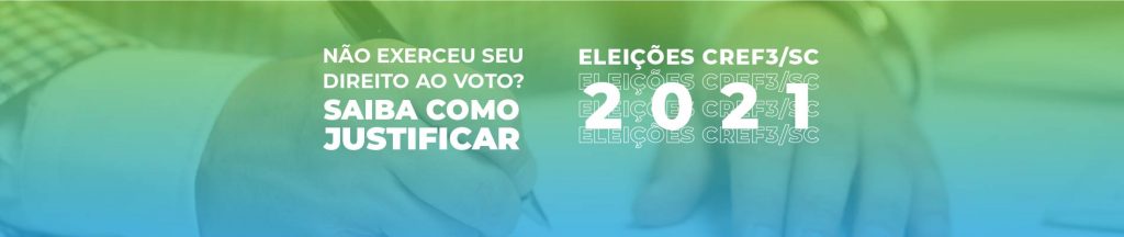 O Profissional de Educação Física apto a votar que não exerceu o direito ao voto deve justificar sua ausência até o dia 31 de outubro de 2021, 30 dias após a data da eleição. A justificativa deverá ser apresentada por escrito (na forma presencial ou digital, no e-mail eleicao@crefsc.org.br) acompanhada da respectiva comprovação ao CREF3/SC.