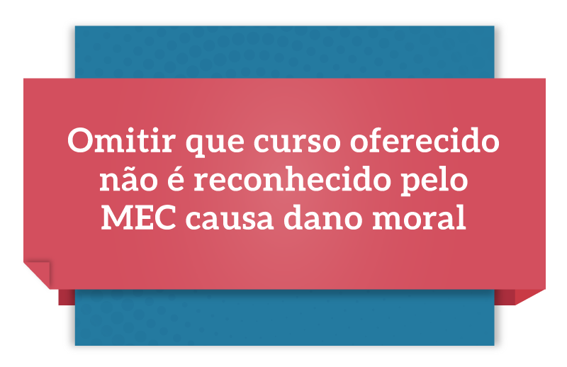 Oferecer curso não reconhecido pelo Ministério da Educação configura falha na prestação do serviço e omissão de informação relevante, o que gera dano moral. Assim entendeu a 1ª Turma Recursal do Tribunal de Justiça do Distrito Federal ao determinar que uma instituição de ensino indenize ex-aluno que se formou, mas não conseguiu validar o diploma por falta de certificação do MEC.
