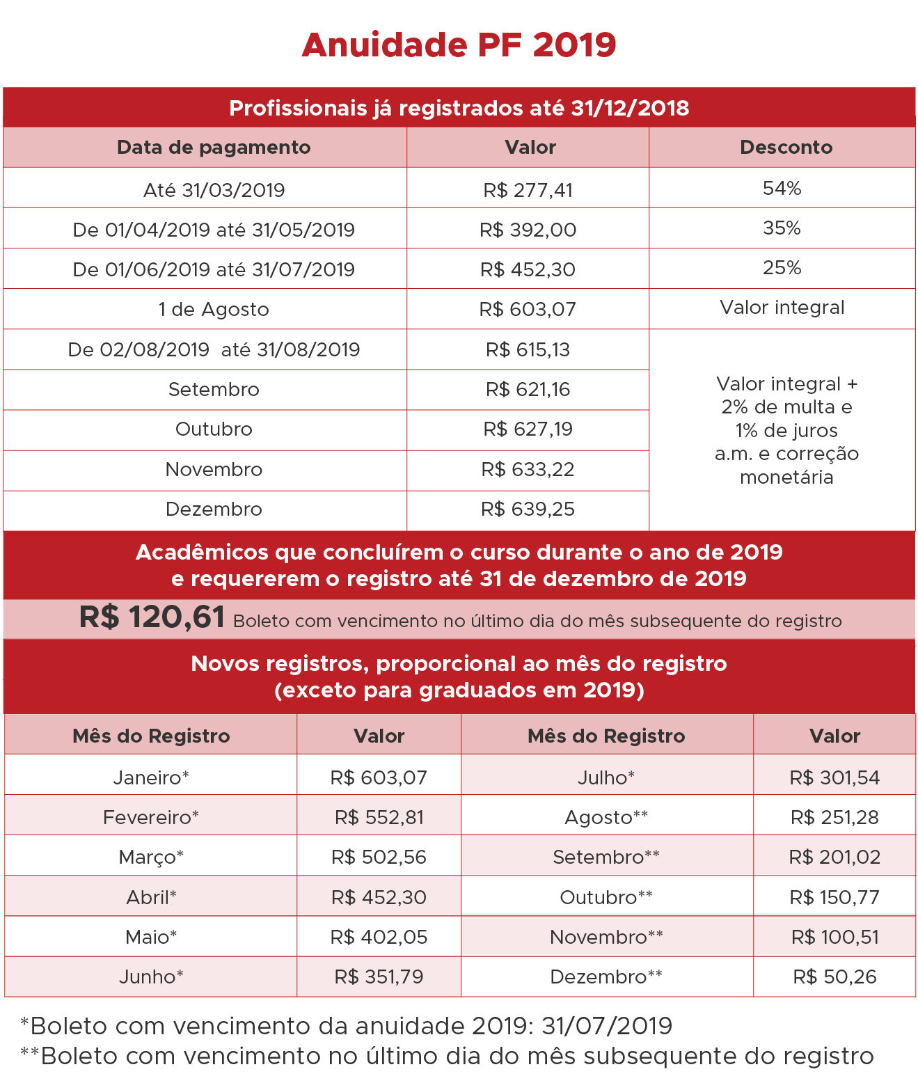 Valor da anuidade PF 2019 sem reajuste: R$ 603,07, de acordo com a Resolução n° 0154/2018/CREF3/SC.