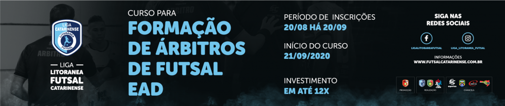 futsal siteEstão abertas as inscrições para o curso para Formação de Árbitros de Futsal, da Escola de Arbitragem Catarinense José Acácio dos Santos “PePe”, promovido pela Liga Catarinense de Futsal e realizado pela Liga Litorânea de Futsal/LLF, Liga Gaúcha de Futsal e Associação Sul Americana de Esportes, Cultura, Turismo e Lazer.  O curso, em formato EAD, tem como objetivo formar e capacitar novos alunos para o desempenho nas funções de árbitro, representante, anotador e/ou cronometrista de Futsal. As inscrições podem ser realizadas até o dia 20 de setembro, no site www.futsalcatarinense.com.br, clicando no banner do evento. Profissionais de Educação Física, em dia com suas obrigações estatutárias, têm 10% de desconto na inscrição.