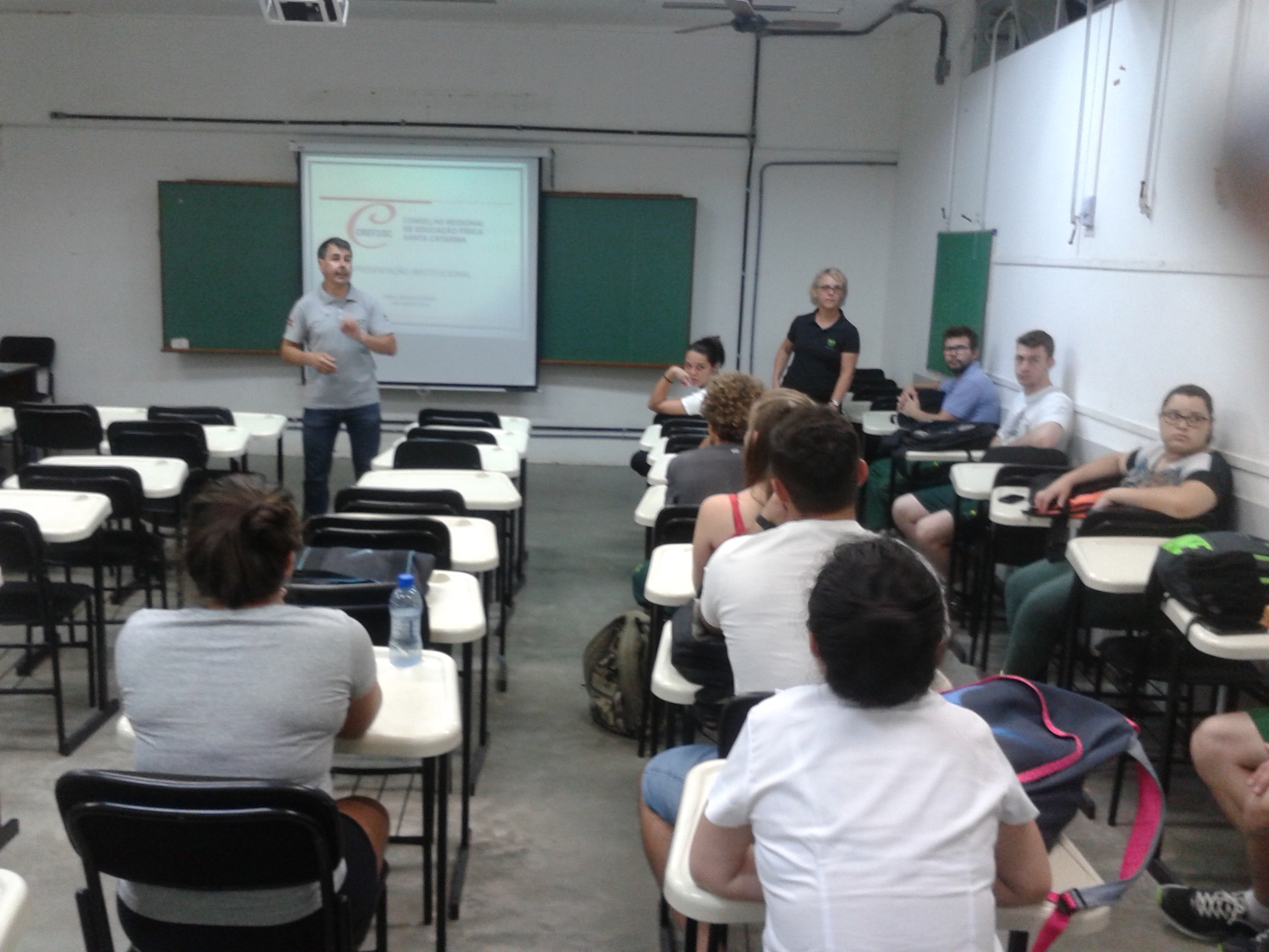Aproveitando a visita em Joinville, o CREF3/SC realizou uma série de ações na cidade. Na agenda do dia 11, foram realizadas reuniões com a Fundação de Esportes, Lazer e Eventos, Gerência de Educação da ADR e com o Sindicato Patronal de Academias/SC, além de palestra para os acadêmicos de Educação Física da Univille.