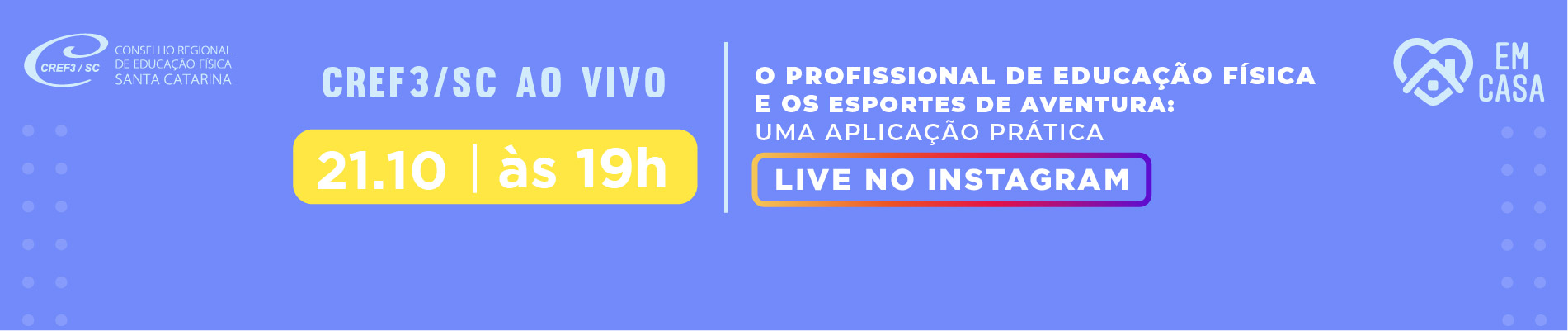 Live no Instagram do CREF3/SC: 21/10, às 19hs