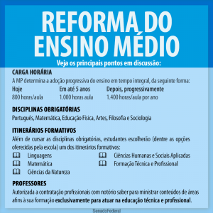 Já aprovada pela Câmara dos Deputados, a MP 746, da reforma do ensino médio, chegou ao Senado modificada e agora tramita como PLV 34/2016. Veja neste quadro comparativo como é hoje o ensino médio, o que originalmente dizia a MP 746 e agora como está o PLV 34: http://bit.ly/2iI1m4m.