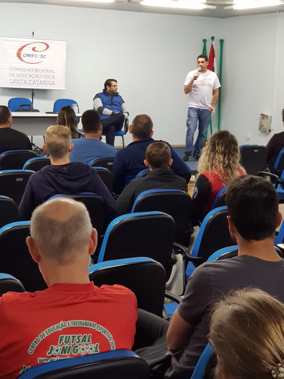 WhatsApp Image 2019-06-17 at 08.44.48O conselheiro Roberto Guilherme Christmann (CREF 000921-G/SC) abriu hoje o segundo dia do Workshop de Capacitação e Atualização Profissional de São Miguel do Oeste, que até amanhã vai tratar da diversidade de jogos recreativos na escola, em curso ministrado pelo prof. Roberto Mafli (CREF 001957-G/SC), no Ginásio de esportes da Escola Tranquilo José Rigoni. Participaram da abertura o secretário de Educação de São Miguel do Oeste, Paulo Ricardo Drumm e o assessor de Atividades Externas do CREF3/SC, Juliano Prá (CREF 000258-G/SC).