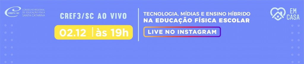 Você sabe como a tecnologia pode auxiliar no ensino da Educação Física? Na próxima quarta-feira, 2/12, vamos conversar sobre as perspectivas do ensino híbrido para a Educação Física Escolar na live “Tecnologia, mídias e ensino híbrido na Educação Física Escolar”, que será realizada às 19hs, no Instagram do CREF3/SC. A prof. Ma. Mariluce Poerschke Vieira (CREF 002890-G/SC), professora do Curso de Educação Física da Unoesc Chapecó e do Colégio Marista São Francisco, e o prof. Me. Philipe Guedes Matos (CREF 010474-G/SC), professor do curso de Educação Física da Unisul Tubarão e da rede municipal de ensino de Laguna, vão abordar, entre outros assuntos, as Tecnologias Digitais de informação e comunicação – TDIC na Educação e os Jogos eletrônicos na Educação Física Escolar, mediados pela prof. Esp. Denise Correia Zanotti (CREF 000879-G/SC), Presidente Interina da Comissão de Educação Física Escolar do CREF3/SC, que vai mediar o debate.
