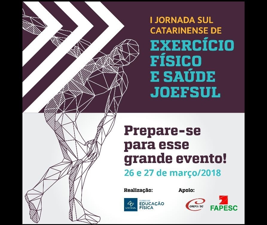 O curso de Educação Física da Unisul Tubarão realiza a I Jornada Sul Catarinense de Exercício Físico e Saúde – I JOEFSUL, nos dias 26 e 27 de março, com palestras, mesas redondas e painéis que vão debater sobre saúde e exercício físico da criança ao idoso, com foco na atualização profissional. O evento conta com apoio do CREF3/SC e Fapesc.