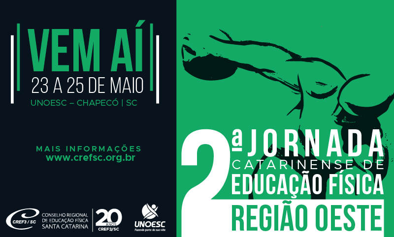 Reserve as datas! Em breve as inscrições estarão abertas e serão gratuitas para acadêmicos e profissionais de Educação Física registrados no CREF3/SC. Para profissionais de outras áreas, a inscrição terá o valor de R$ 150,00.